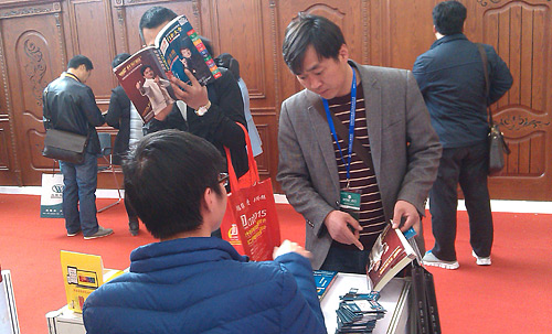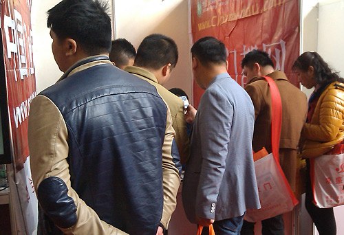 “這本書還有嗎可以給我一本嗎?”“對不起先生,我們這邊的書籍光盤已經(jīng)全部贈(zèng)送完了。”“真的沒有了嗎?要不我花錢買一本,你們賣一本給我吧。”“對不起先生是真的全部都送完了。”這樣的對話不斷從中國門都網(wǎng)的參展展位中傳來,與其他裝扮精美,排放整齊的廠商展位相比,中國門都網(wǎng)的參展展位顯得分外擁擠。在不大的展位里不斷的圍上前來取要《中國門都門企大全》的經(jīng)銷商,一些沒拿到書籍和光碟的經(jīng)銷商對于自己“晚來一步”深感遺憾不停的詢問是否可以花錢買一本或是還是否可以通過其他方式獲得書籍。