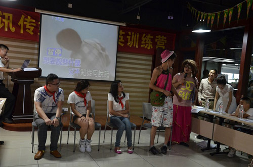 每一個(gè)節(jié)目背后都有一個(gè)故事,或感悟、或溫馨、或搞怪。“我們大概花了一半的時(shí)間在挑選節(jié)目。”技術(shù)部門(mén)主管富哥告訴筆者。公司里不乏能人輩出,然而,技術(shù)部門(mén)里面幾乎沒(méi)有人擅長(zhǎng)跳舞。根據(jù)PK規(guī)則,每個(gè)部門(mén)都必須要有一個(gè)團(tuán)體舞,因此,舞蹈挑選花了許多時(shí)間。而這樣的情況同樣見(jiàn)況于采編部和開(kāi)發(fā)部。這幾個(gè)部門(mén)無(wú)一例外都挑選了以搞怪、搞笑為主線的團(tuán)體舞蹈,“我們不能從技術(shù)上去取勝,那就走好玩的路線。”
