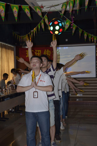 此次才藝比拼,共有21個(gè)節(jié)目。在前期準(zhǔn)備中,陳總將員工按部門(mén)分成7個(gè)組,所以,此次的才藝比拼,也是這7個(gè)組的終極PK。節(jié)目?jī)?nèi)容也是豐富多樣,有熱辣的最炫民族風(fēng)、椅子舞,有爆笑的小品《傻子上學(xué)》,有搞怪的《千手觀音》、《甩蔥舞》,有溫馨感人的《感恩的心》等等。